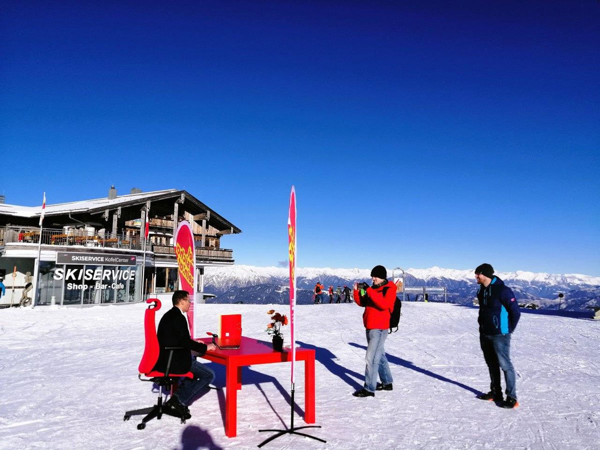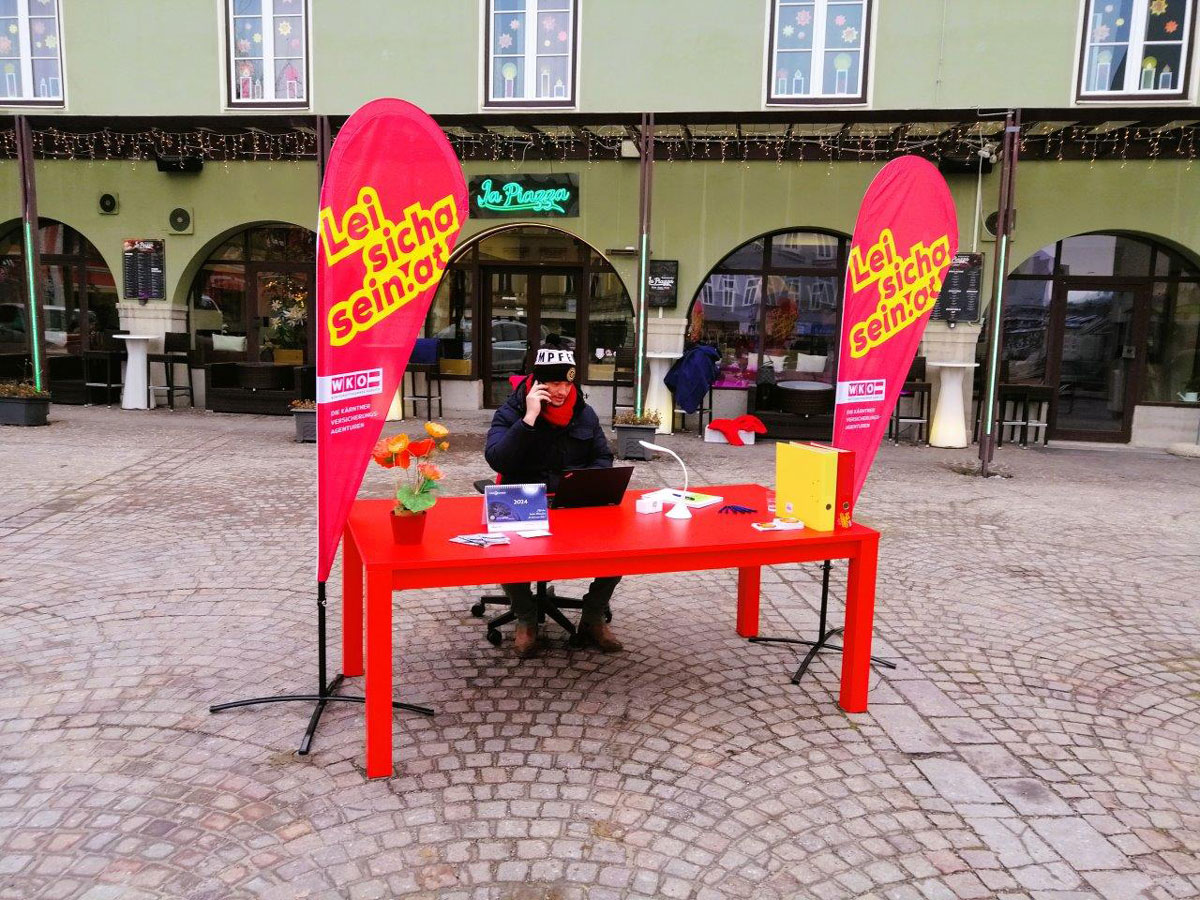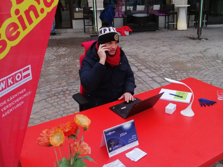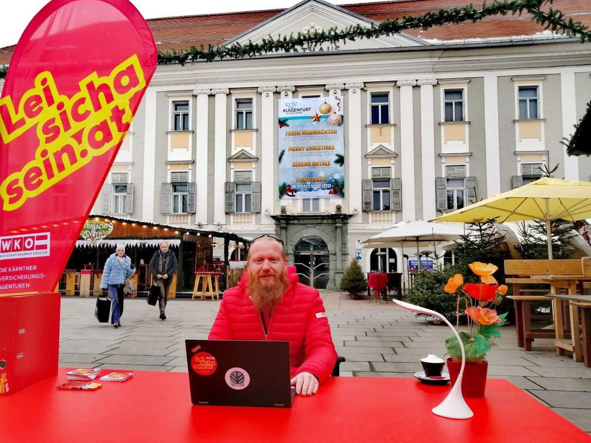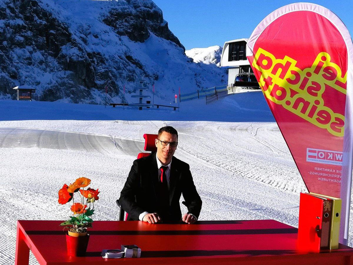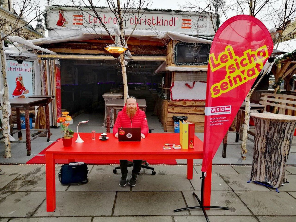 Die Kärntner Versicherungsagenturen waren auf Tour durch ganz Kärnten und haben ihr Büro nach draußen verlegt. Mit dem Outdoor-Office am roten Schreibtisch – mitten in der Stadt, am Christkindlmarkt oder an der Piste – waren sie nicht zu übersehen. Seht selbst!